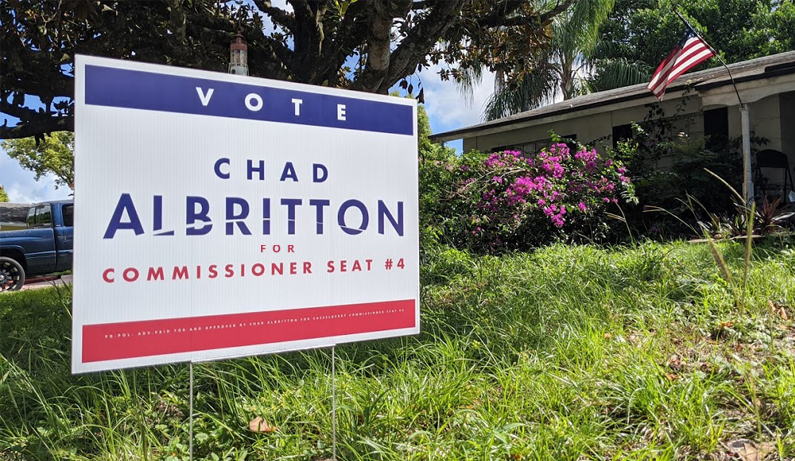 Help us win by showing your support with a free Chad Albritton for Casselberry City Comissioner Seat 4 Yard Sign!